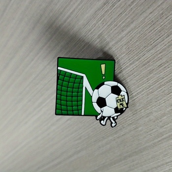 Pin llamativo con un gráfico de fútbol, imprescindible para los entusiastas del fútbol
