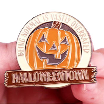 Broche de cabeza de calabaza divertido de Halloweentown, ser normal está muy sobrevalorado para fiesta, insignia de aleación, regalo para amigos